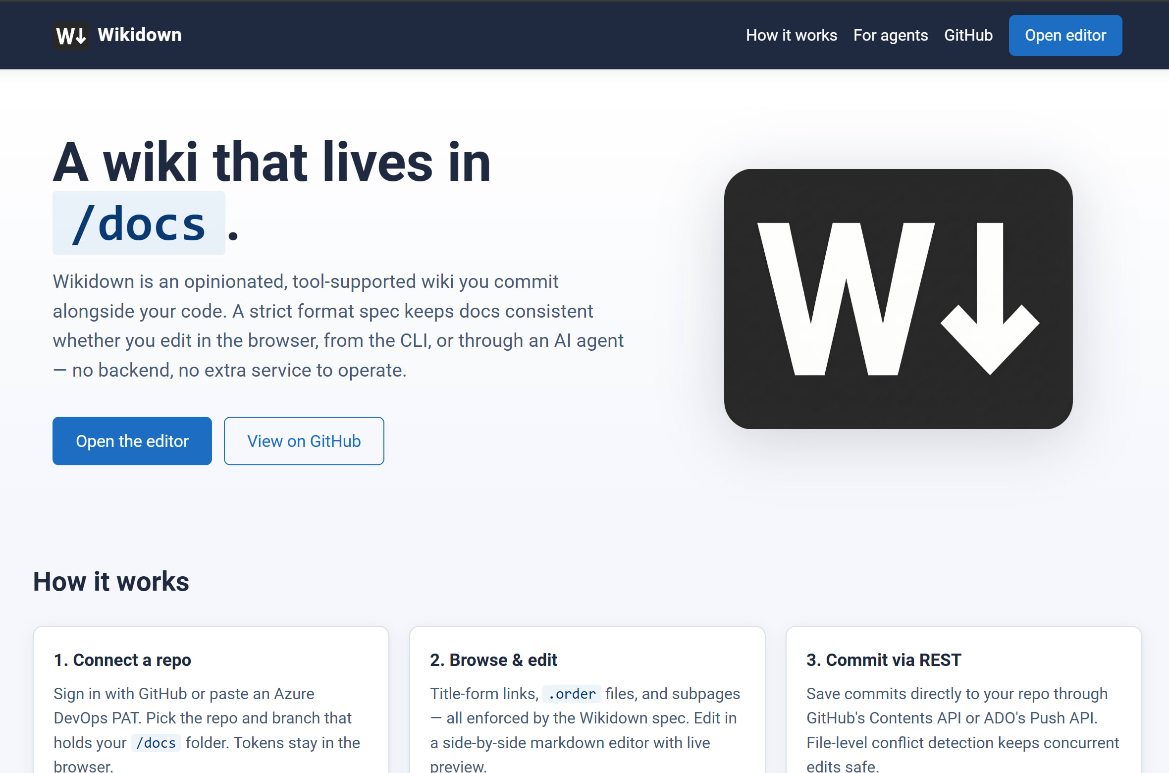 Wikidown is not just a web editor. It is a set of guardrails that make your documentation equally useful to humans and AI.